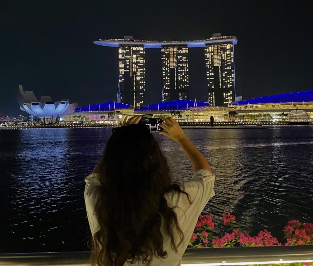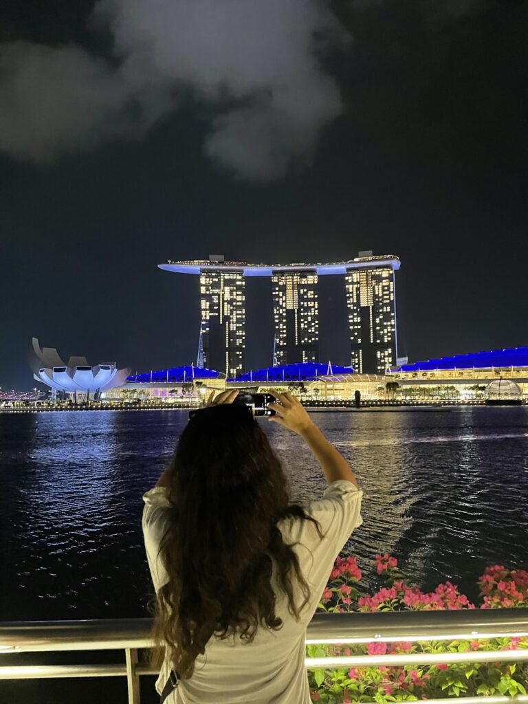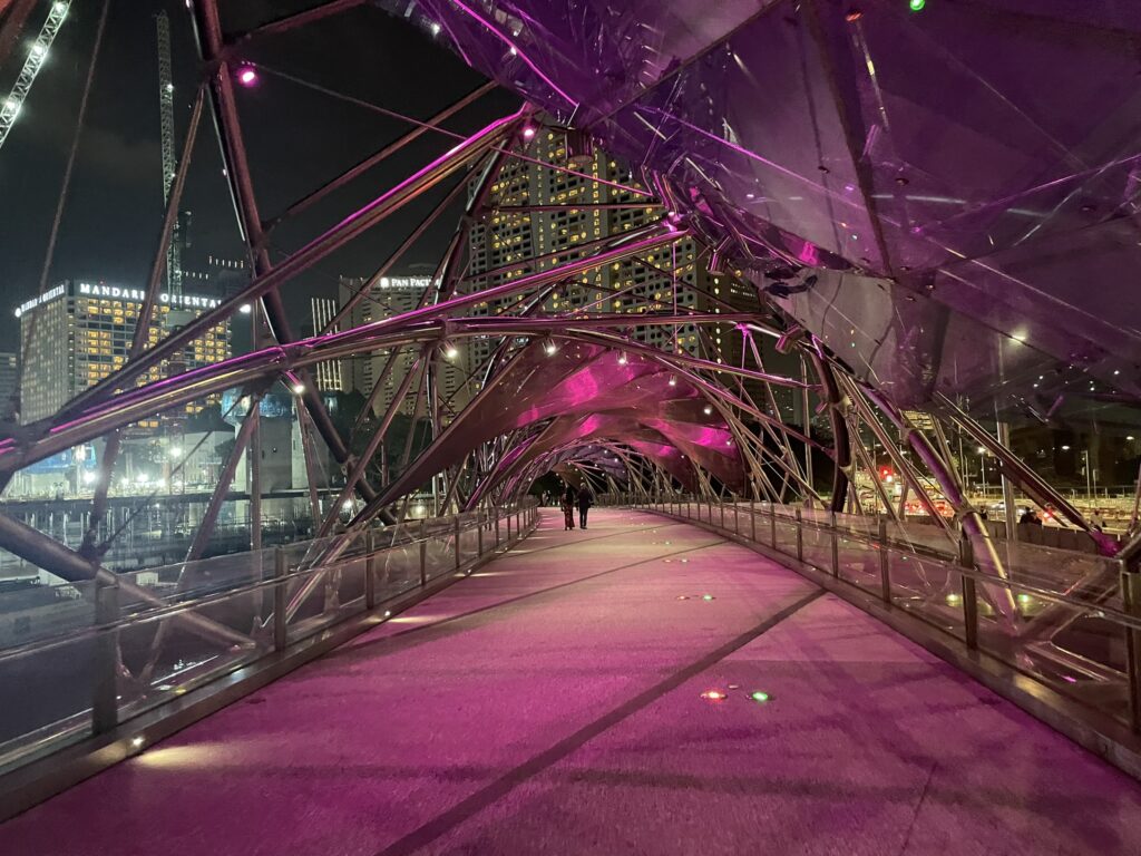 Hodamo po laserskim pasarelama ispaljenim sa jedne obale reke Singapur na drugu. Presecaju noćno nebo zastrto neboderima, ponosom finansijskog centra Azije. Neke od njih posmatram kao da su simulacija planeta na nebu, deluju daleko, a vidljive su i osvetljavaju grad.