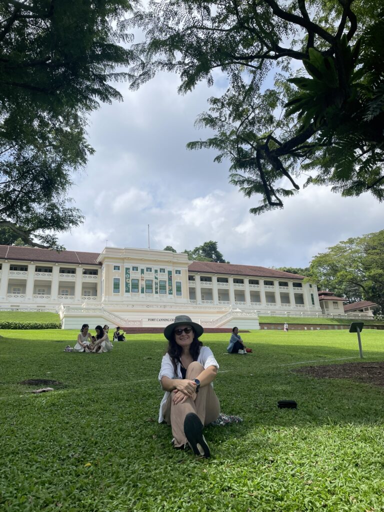 Isprečio nam se Fort Kening park, nekadašnje utvrđenje Britanaca na brdašcetu iznad centra. Tabla na ulazu nam savetuje da “kontempliramo u pejzažu”, u tri koraka: sedenje na travi, duboko udisanje, prepuštanje prirodi. Raskošni park na brdu ne deluje kao neko bekstvo iz urbanog dela, već kao njegov prirodni nastavak, nešto je mirniji i do njega se penjemo pokretnim stepenicama.