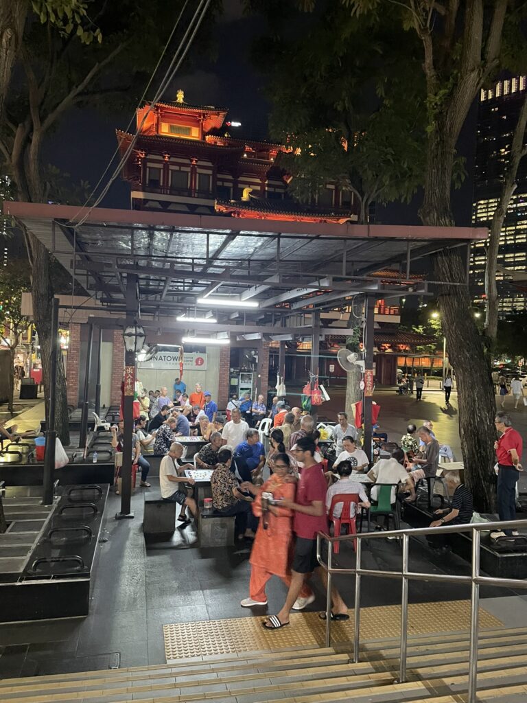 Odlazimo u Čajnataun, i kako prilazimo, sve je manje natpisa na engleskom. U njemu su i na manje od sto metara udaljeni veliki kineski hram i starije hindu svetilište u kojem upadamo na službu, i džamija oko koje izbijaju momci u arapskim odeždama. Moderne čajdžinice prodaju mešavine čajeva za osveženje, protiv nadimanja, za večnu lepotu itd, sa izloženim travčicama koje na kraju završavaju u visokim čašama poput onih iz Starbaksa.
