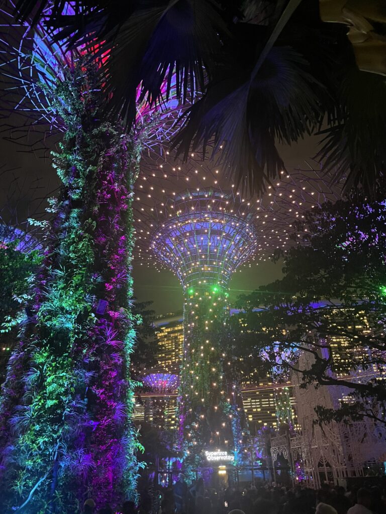 Uveče, odlazimo u Gardens by the bay, najturističkiji deo grada, baštu superdrveća koje proizvodi struju i štasvene, iako su nama moćnije delovala ona prava, iz botaničke bašte. Gubimo se u spektaklu svetlećeg drveća, među stotinama turista i ubrzo evakuišemo.